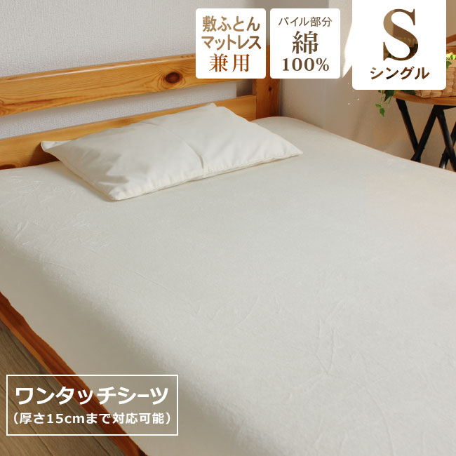 ボックスシーツ シングルサイズ(105cm×205cm)タオル地 低反発マットレス兼用ワンタッチシーツ シンカーパイル パイル部分綿100%