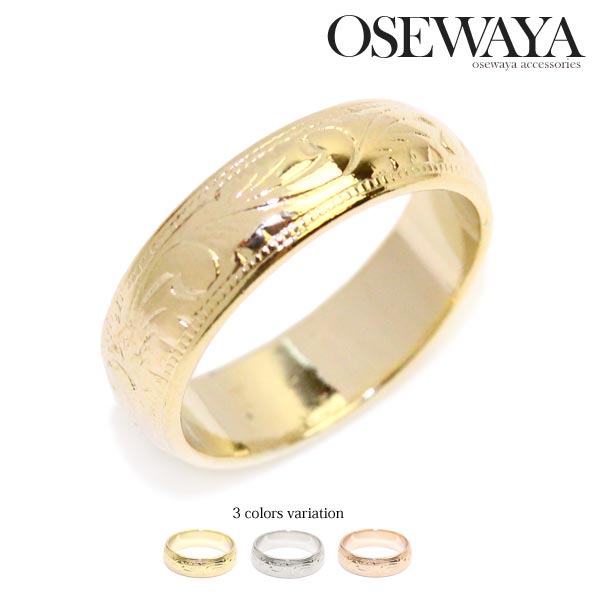 ハワイアンジュエリー リング 刻印無料 指輪 ステンレスハワイアンジュエリー サージカルステンレス バレル ストレートエッジ スクロール ピンク ローズゴールド メンズ レディース ハワイアン