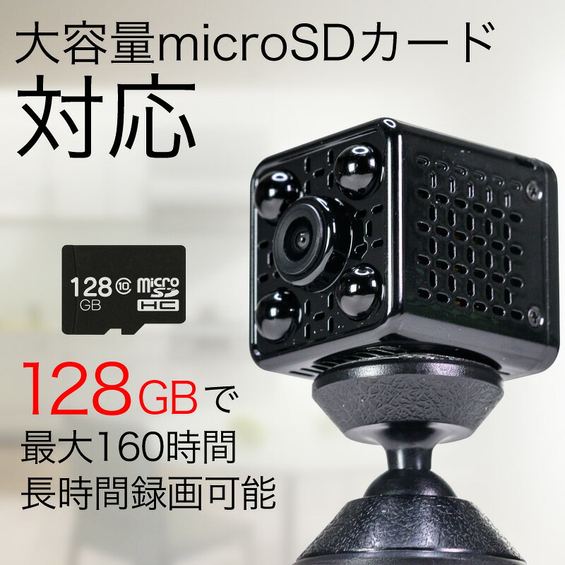 ■商品説明 超小型防犯カメラ microSDカード最大128GB対応 長時間録画可能 500万画素センサー搭載 FullHD1080pで録画が可能 最大128GBで最大160時間の長時間録画が可能。