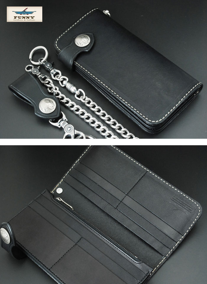 【送料無料】【日本製】ファニー 財布 メンズ 長財布 ウォレット ≪FUNNY 財布 ファニー ライダースウォレット 5セントコインコンチョ サドルレザー ブラック≫レザーウォレット レザークラフト 本皮 本革 財布