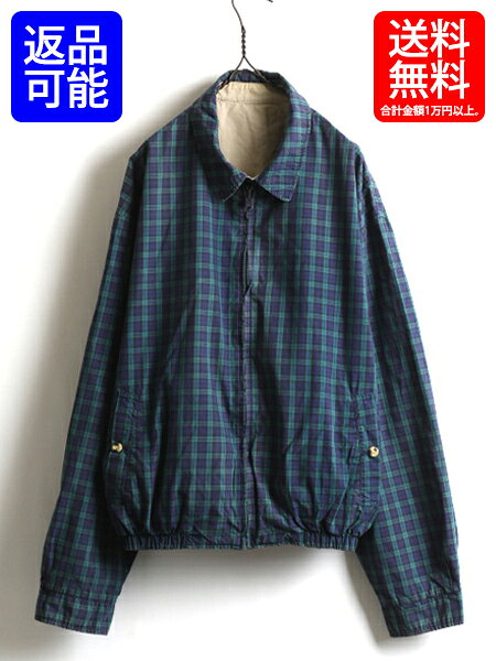 90's ■ TOMMY HILFIGER トミー ヒルフィガー リバーシブル コットン スイングトップ ( 男性 メンズ L )ベージュ チェック ジャンパー 古着| 【古着】【US古着】フルジップ アウター 90年代 カジュアル ジャケット ブラックウォッチ ウエア 古着屋 USED 中古