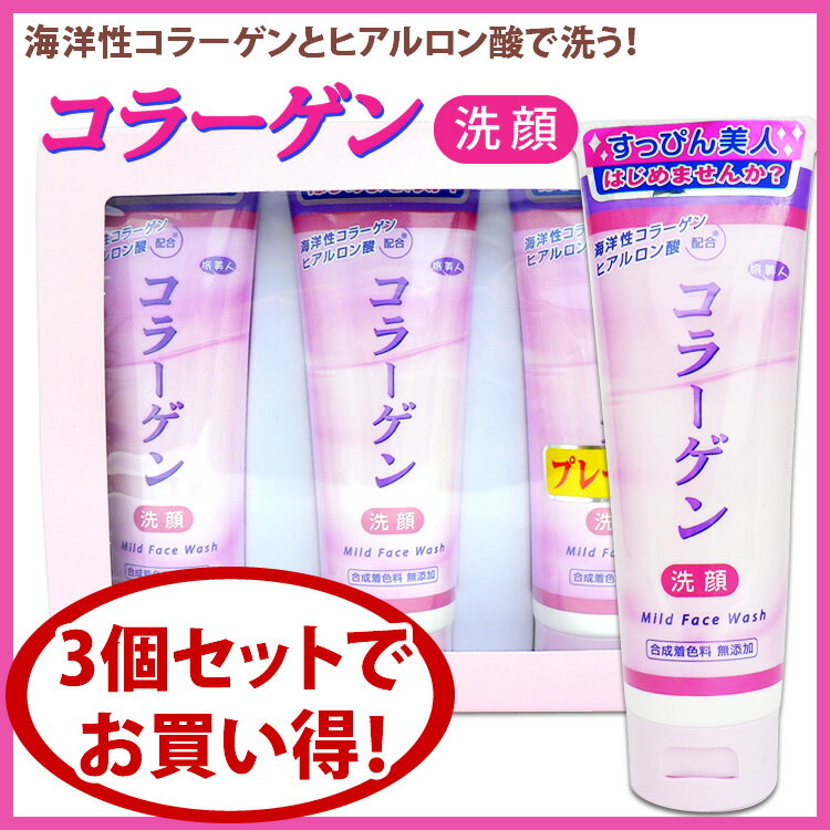 【アズマ商事 コラーゲン洗顔クリーム 3本入り】旅美人 アズマ商事 コラーゲン 洗顔クリーム 洗顔料 アズマ商事のコラーゲン洗顔クリーム 送料無料 洗顔フォーム スキンケア