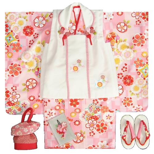 七五三 着物 3歳 女の子被布セット マユミブランド 濃淡ピンク市松グラデーション 桜 金彩使い 被布桜刺繍白色 雛祭り 正月 足袋付フルセット