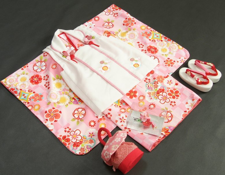商品情報 商品番号 k7-15-010580-u3 セット内容 着物 被布 長襦袢 草履 かかとゴム きんちゃく 髪飾り 刺繍半衿(縫い付け済み)縫い付け済み腰紐 重ね衿(縫い付け済み) 白足袋 着付け解説DVD カラー 着物 濃淡ピンク市松被布 白色草履判 白色 素材 着物 ポリエステル100%被布 ポリエステル100%襦袢 ポリエステル100% サイズ 対象年齢 おもに2歳、3歳対応身長 約85cm〜105cm(お子様の体の厚みにもよりますが身長95cm前後であればお直しなしで着用可能です)身丈 約90cm(約75cmに腰上げ済み)袖丈 約52cm裄丈 約46cm(約40cmに肩上げ済み)被布コート丈 約49cm 草履 草履判サイズ 約18cm(足サイズ15から18cmぐらいまで対応)かかと高さ 約4cm ご注意 ※箱の中にたたんで収納されているため軽いタタミしわがついている場合がございますのでご了承下さい※生地の裁断位置により多少柄の出方が変わることがございます※店舗での並行販売も行っていますので箱に多少の汚れがあります。