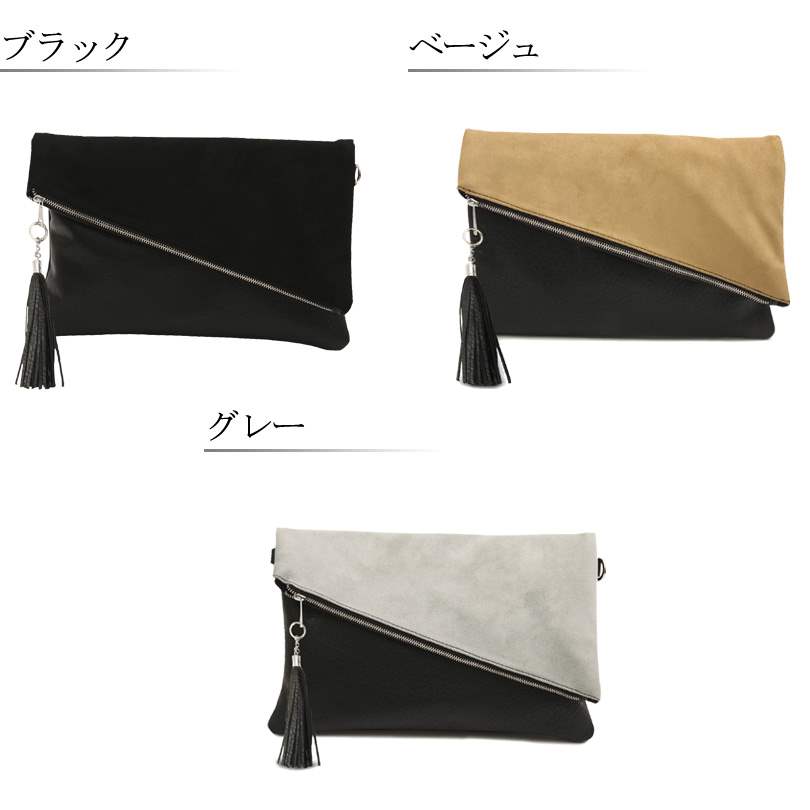 サガンスタイル 20190305新着柔らかなスエード素材と、シボ感の強い本革のような素材をマッチングさせたクラッチバッグです。