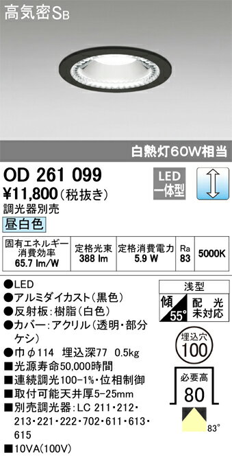 βオーデリック/ODELIC デザインダウンライト【OD261099】LED一体型 連続調光 昼白色 浅型