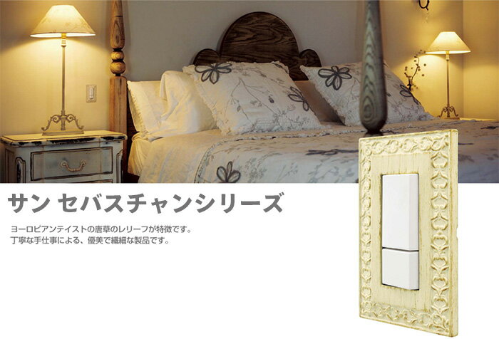 「サン セバスチャン」トグルスイッチ ブライト パティナ(シングル) ホワイト デカペ(シングル) ラスティック カッパー(シングル) ブライト パティナ(ダブル) ホワイト デカペ(ダブル) ラスティック カッパー(ダブル) →同じデザインのスイッチ・コンセントプレート、トグルスイッチ、パネルスイッチ、照明プレート(丸型・角型)があります。