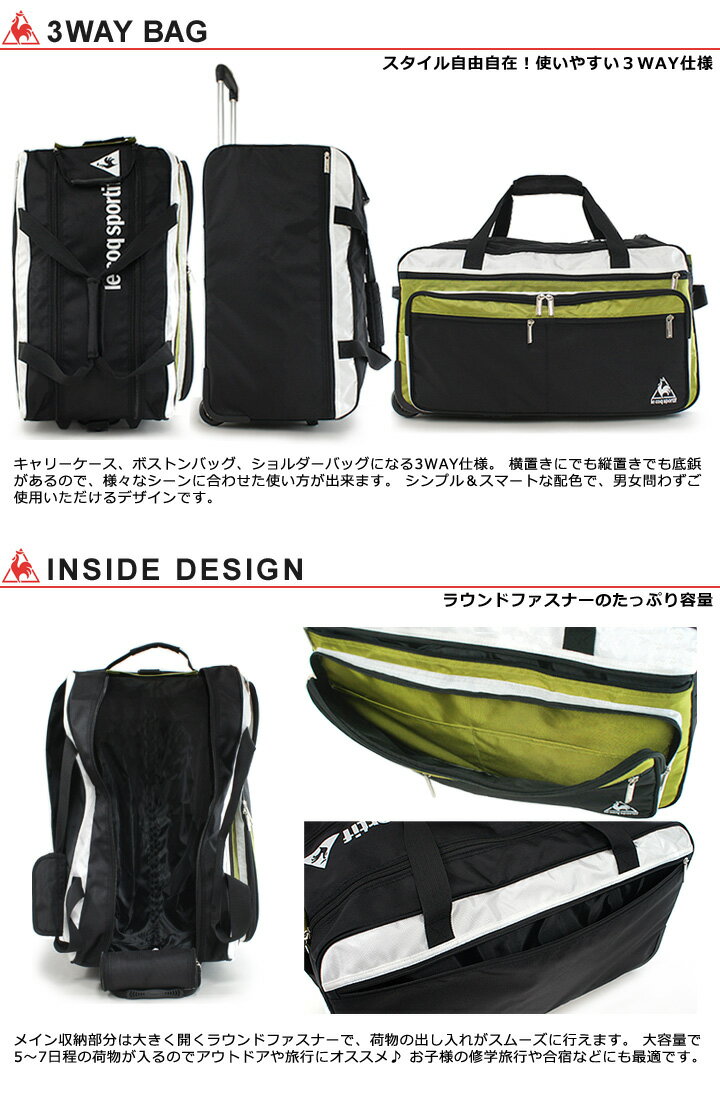 フランスで最も古いスポーツブランド le coq(ルコック)からスーツケースが登場!こちらのスーツケースはボストンバッグ、ショルダーバッグにもなる3WAY仕様です。
