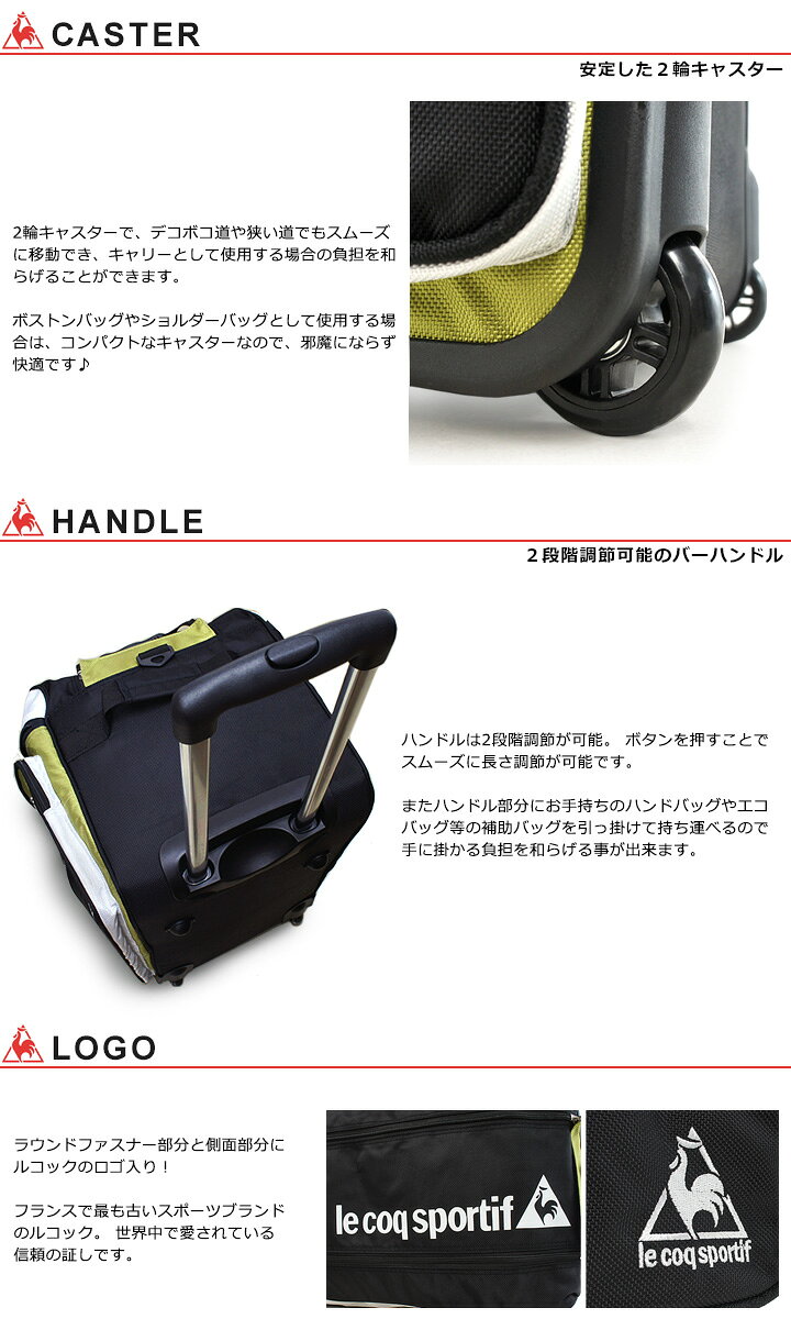 ルコック ボストンキャリー 36965 63cm 【 le coq sportif ロリスカラー ソフトキャリーケース キャリーバッグ ボストンバッグ ショルダーバッグ 】【 3WAY 旅行かばん 】[bef][即日発送]